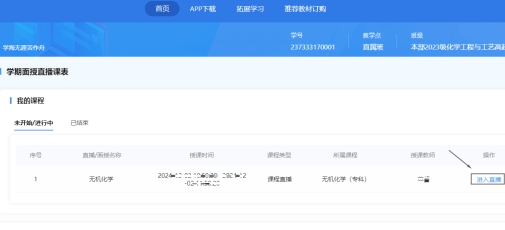 登录学习平台进入学生工作室,如下图:进入“我的面授直播”会看到相应的直播课程信息,点击进入直播即可。