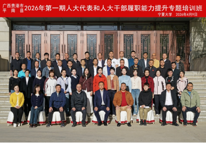 2026年4月9日,春意盎然的宁夏大学贺兰山校区学术交流中心,一场聚焦新时代人大工作高质量发展的“充电蓄能”培训正式开启。来自广西贵港平南县人大系统的50名代表和干部齐聚一堂,开启为期一周的深度学习与思想碰撞。宁夏大学终身教育学部部长、继续教育学院院长刘明,平南县人大常委会主任梁军,副主任罗辉、何发叶出席开班式。开班式由宁夏大学终身教育学部副部长陈晓芳主持。